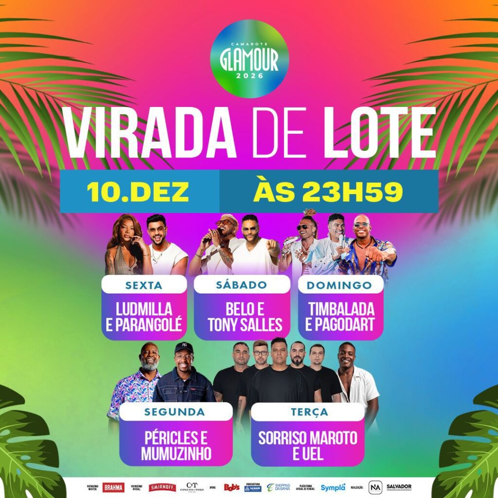 O toque de Glamour vai invadir o Carnaval de Salvador em 2026, o Camarote Glamour anunciou virada de lote nesta quarta-feira, dia 10 de dezembro, com novos preços em vigor no dia 11 de dezembro. O espaço levará para o circuito Barra/Ondina, além de um super serviço open bar, grandes atrações do cenário musical, para oferecer ao folião 5 intensos dias de muita festa.