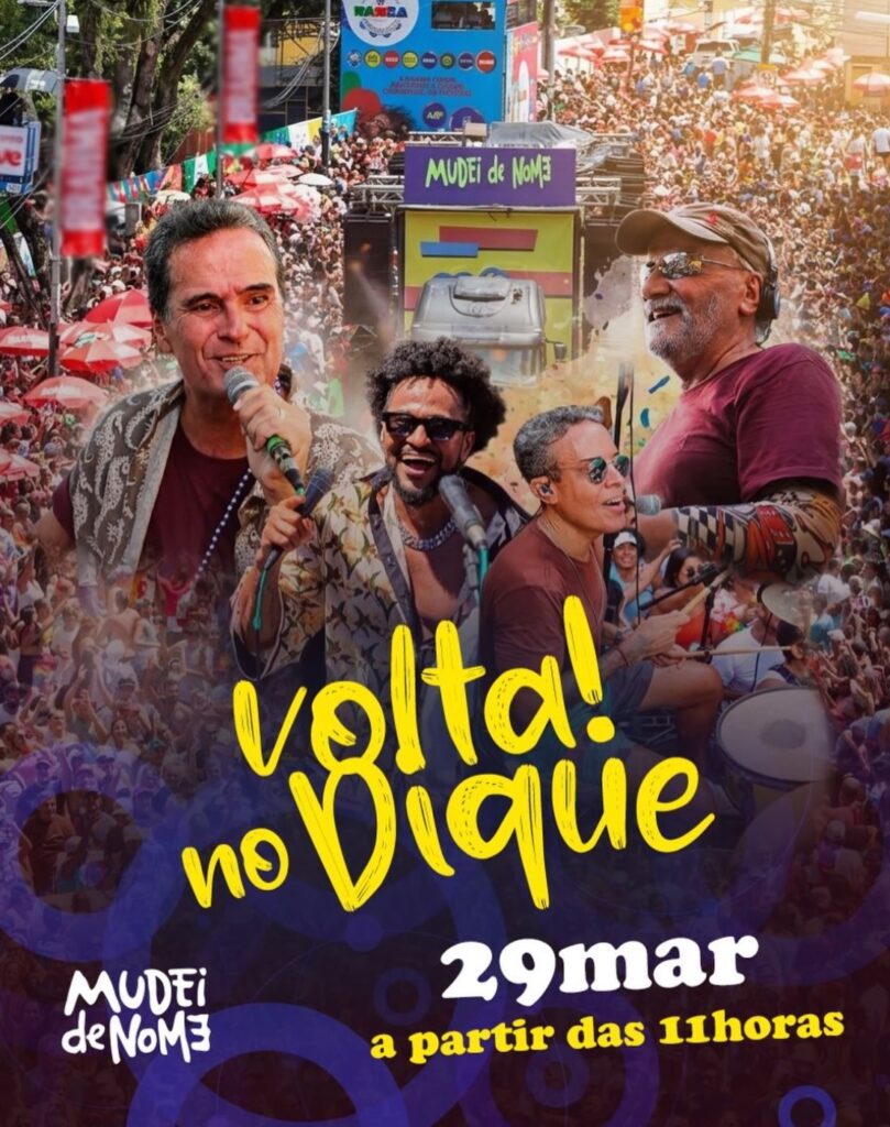 A banda Mudei de Nome confirmou a realização da tradicional “Volta no Dique” no próximo dia 29 de março, em comemoração ao aniversário da cidade de Salvador. O evento, já consolidado no calendário festivo da capital baiana, promete reunir moradores e turistas em um dos cenários mais emblemáticos da cidade.