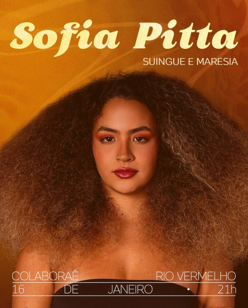 A cantora e compositora baiana Sofia Pitta se apresenta nesta sexta-feira (16), a partir das 20h, no Colaboraê, no bairro do Rio Vermelho. A apresentação integra o clima de celebração do after da Lavagem do Bonfim e traz ao público o show “Suingue e Maresia”, uma experiência musical que celebra as águas, o verão e a música feita na Bahia. A noite contará ainda com participações especiais da cantora Illy e do cantor Tiri.